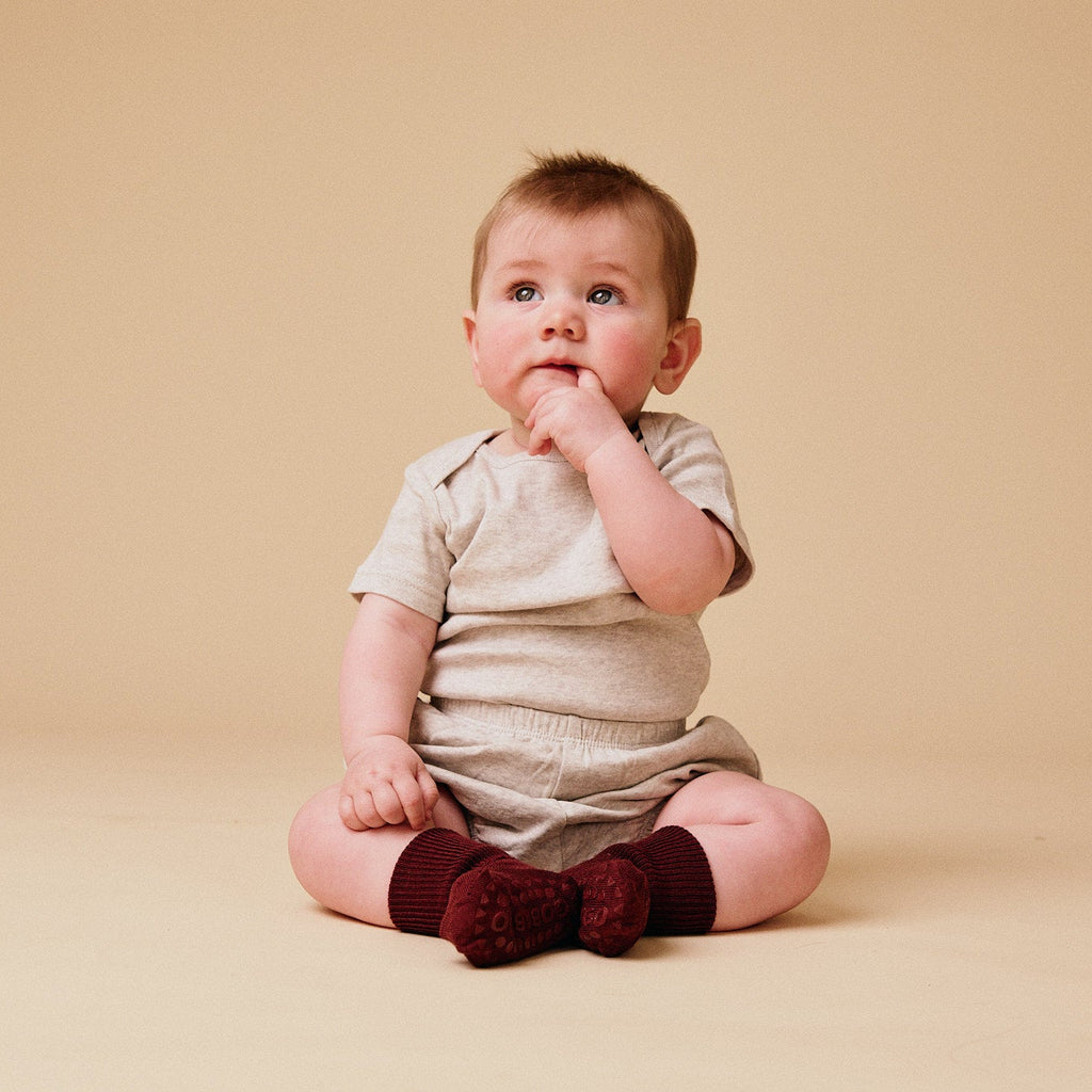• Non-Slip Grip Socks - Merino Wool - Wine red